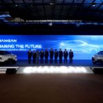 Model berdiri di dekat mobil Changan Lumin saat peluncuran Changan Automobile di Indonesia di Jakarta, Rabu (19/11/2025). Changan Automobile resmi hadir di pasar otomotif Indonesia dengan menggandeng Indomobil Group yang akan memperkenalkan dua model mobilnya yakni Changan Lumin dan Deepal SO7. ANTARA FOTO/Hafidz Mubarak A/foc.